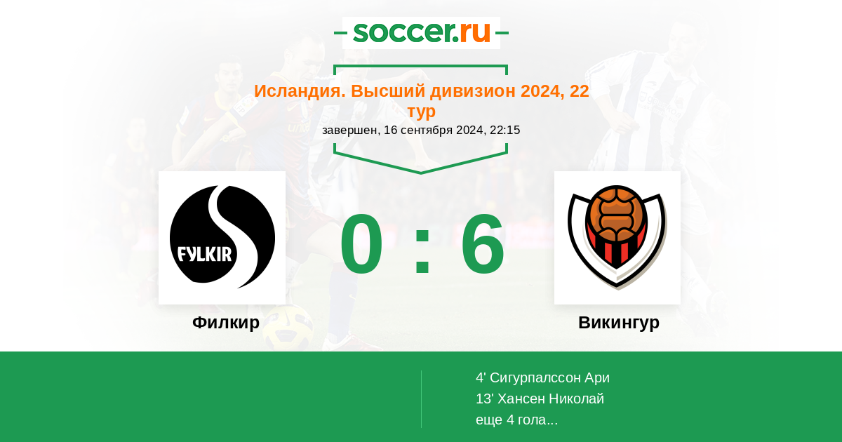 Филкир - Викингур: обзор матча 16 сентября 2024