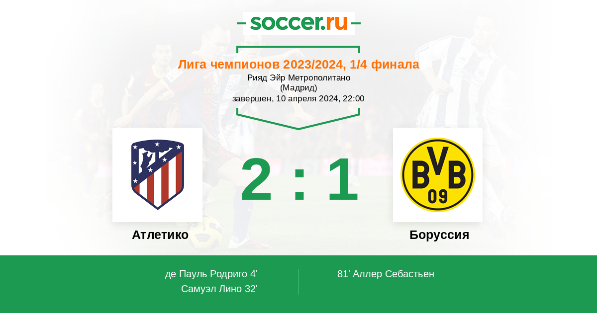 Атлетико - Боруссия: обзор матча 10 апреля 2024