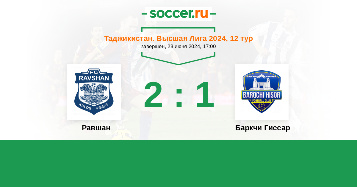 Равшан - Баркчи Гиссар: обзор матча 28 июня 2024