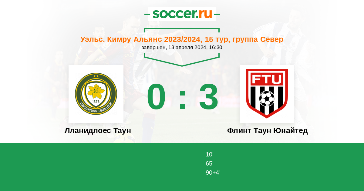 Лланидлоес Таун - Флинт Таун Юнайтед: обзор матча 13 апреля 2024