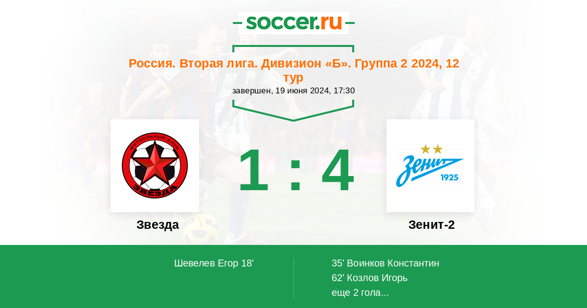 Звезда - Зенит-2: обзор матча 19 июня 2024