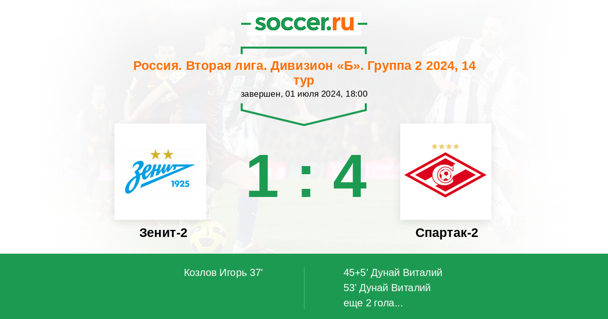 Зенит-2 - Спартак-2: обзор матча 1 июля 2024