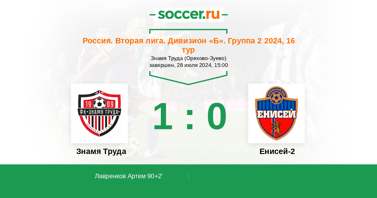Знамя Труда - Енисей-2: обзор матча 28 июля 2024