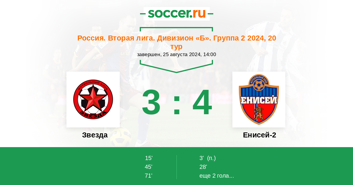 Звезда - Енисей-2: обзор матча 25 августа 2024