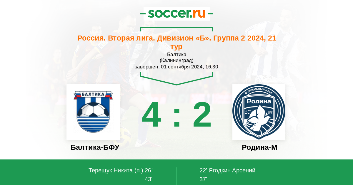 Балтика-БФУ - Родина-М: обзор матча 1 сентября 2024