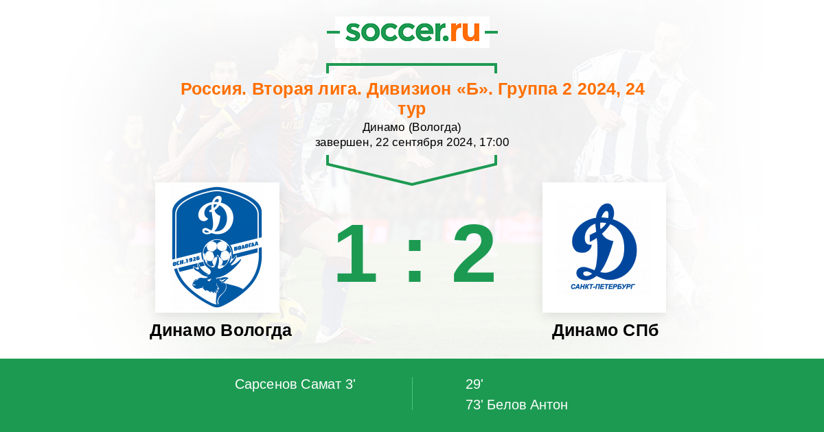 Динамо Вологда - Динамо СПб: обзор матча 22 сентября 2024