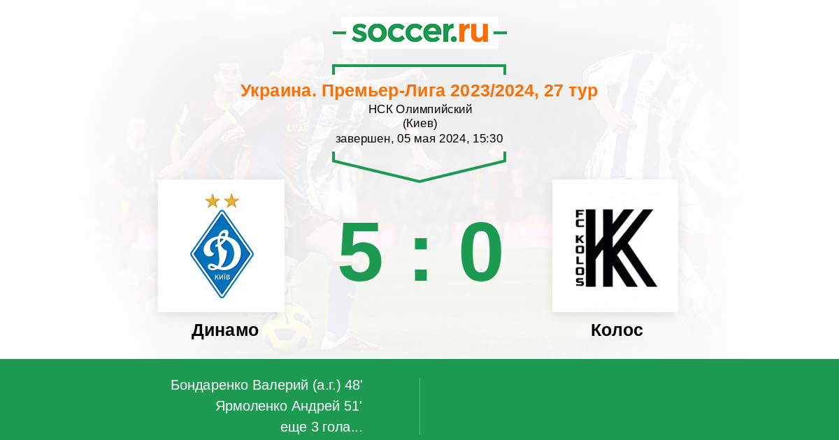 Динамо - Колос: обзор матча 5 мая 2024