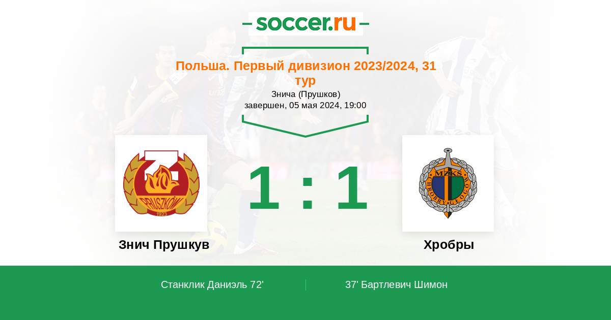 Знич Прушкув - Хробры: обзор матча 5 мая 2024