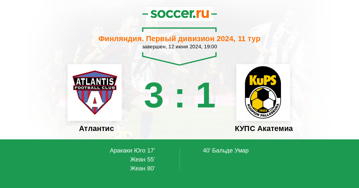 Атлантис - КУПС Акатемиа: обзор матча 12 июня 2024