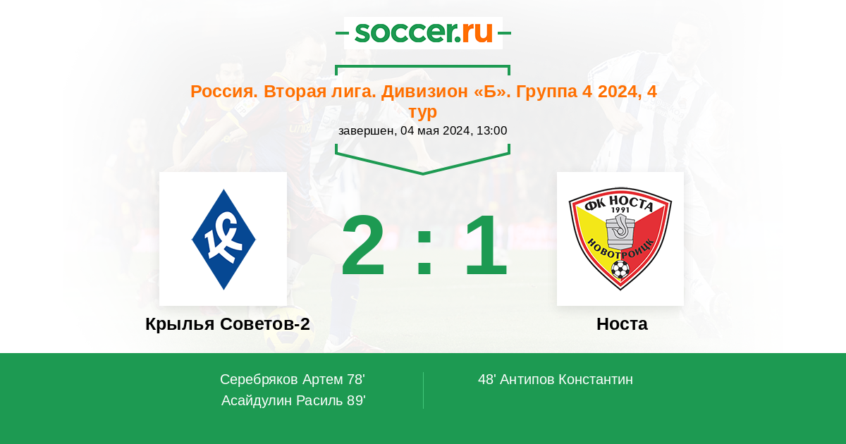 Крылья Советов-2 - Носта: обзор матча 4 мая 2024