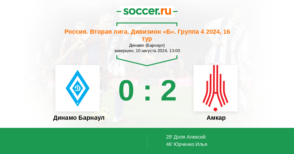 Динамо Барнаул - Амкар: обзор матча 10 августа 2024