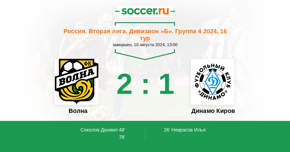 Волна - Динамо Киров: обзор матча 10 августа 2024