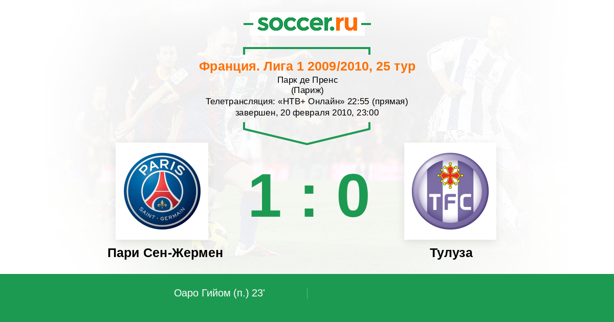 Пари Сен-Жермен - Тулуза: обзор матча 20 февраля 2010
