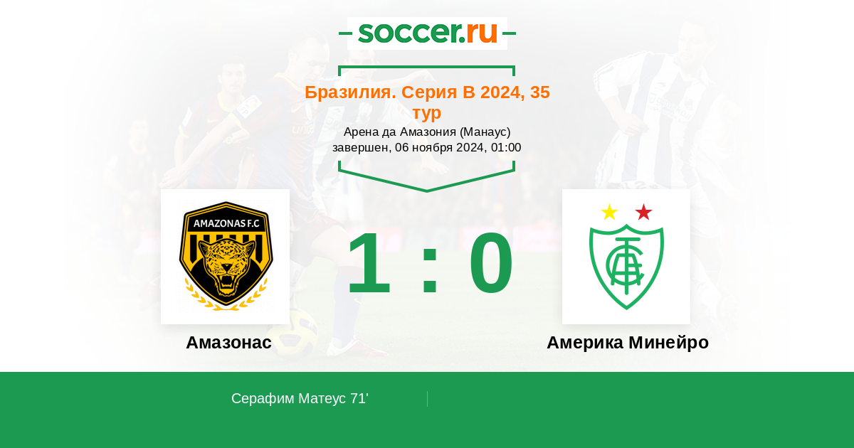 Амазонас - Америка Минейро: обзор матча 6 ноября 2024