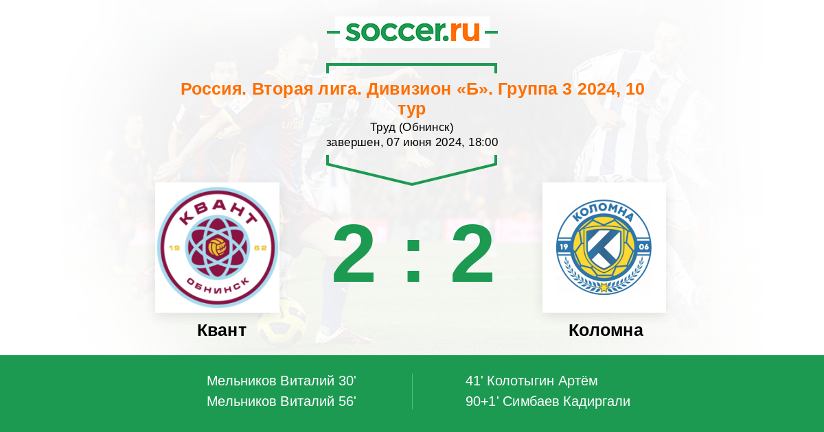 Квант - Коломна: обзор матча 7 июня 2024