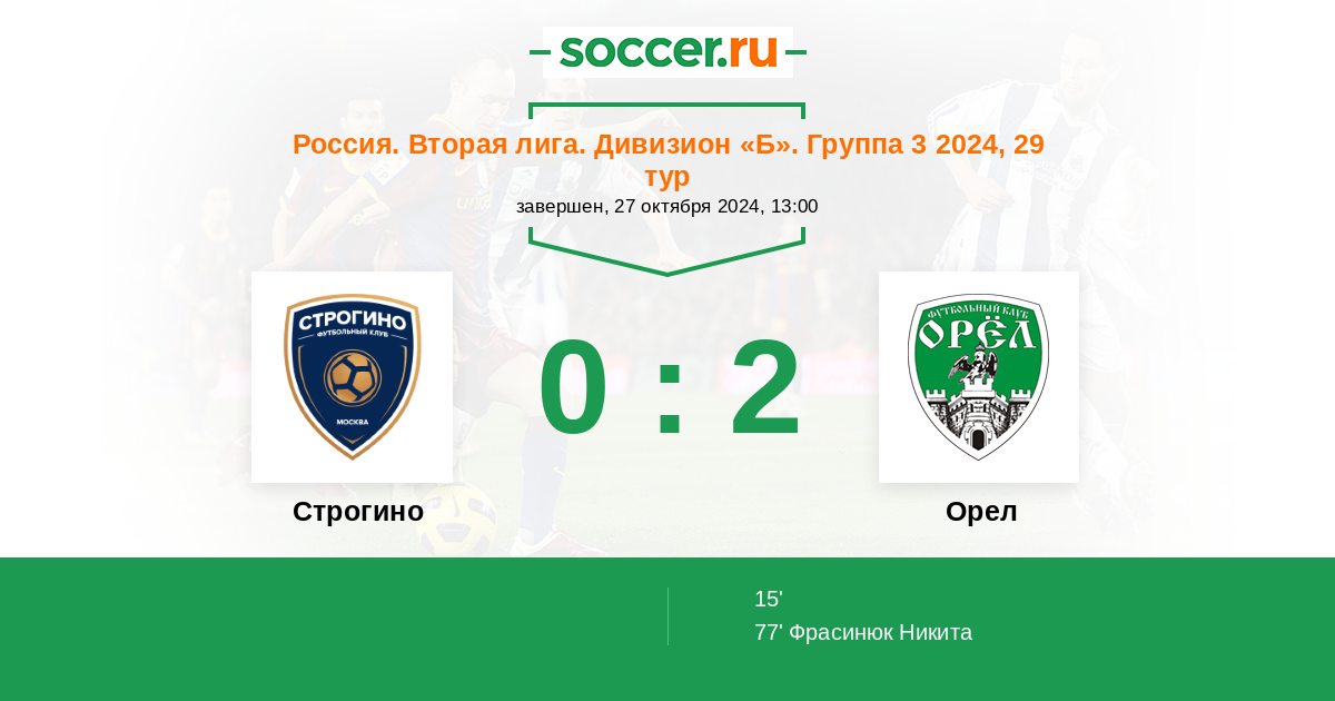 Строгино - Орел: обзор матча 27 октября 2024
