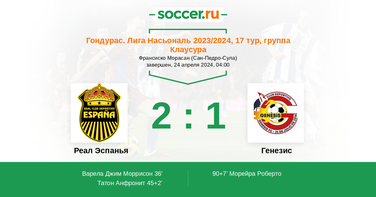 Реал Эспанья - Генезис: обзор матча 24 апреля 2024