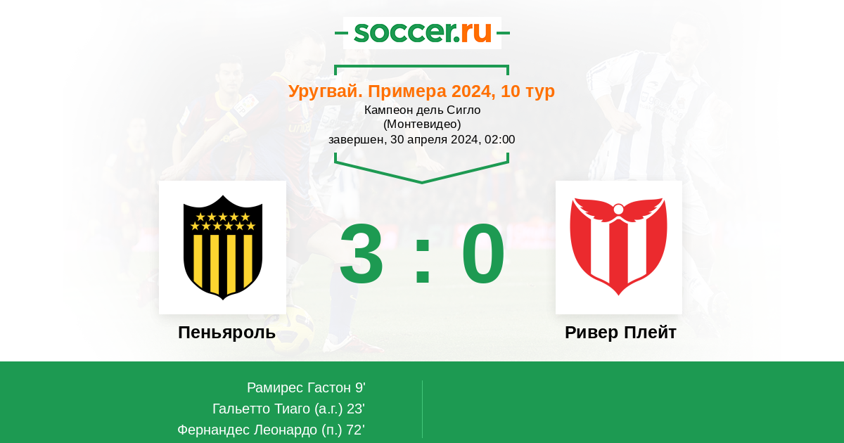 Пеньяроль - Ривер Плейт: обзор матча 30 апреля 2024