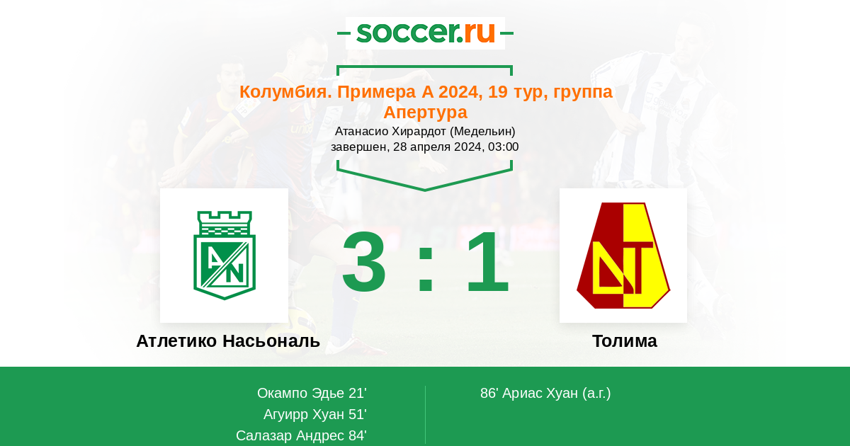 Атлетико Насьональ - Толима: обзор матча 28 апреля 2024