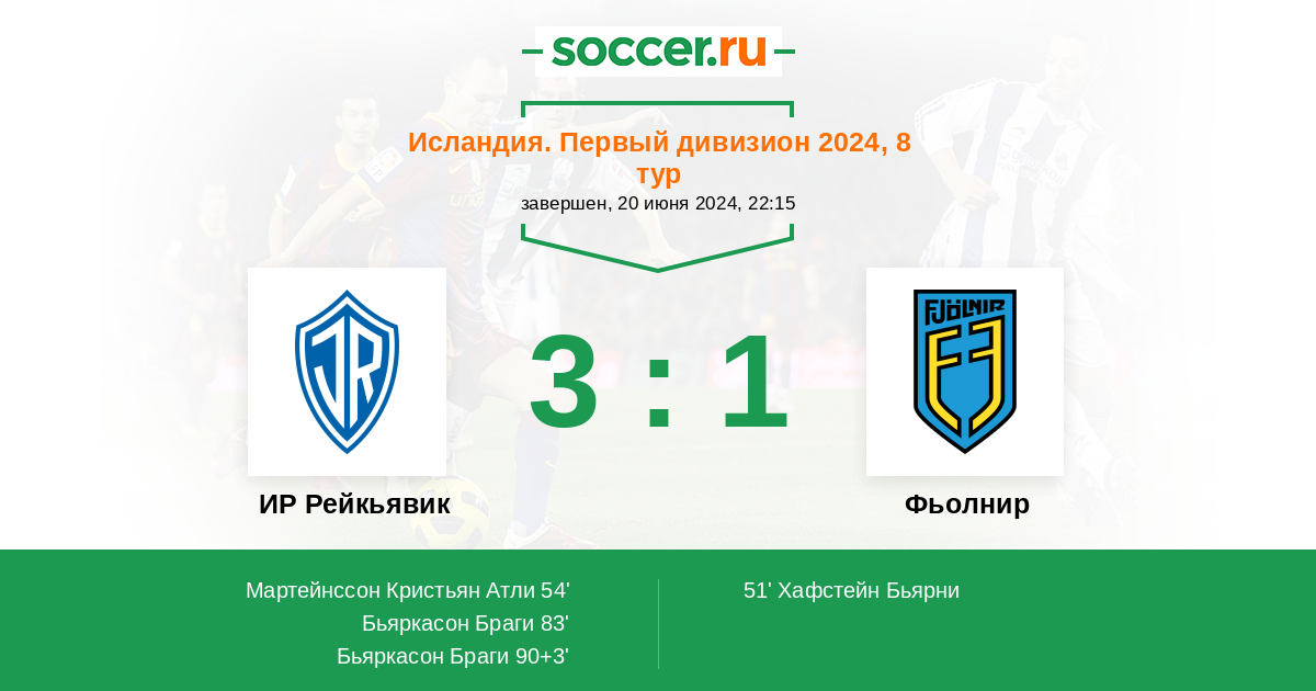 ИР Рейкьявик - Фьолнир: обзор матча 20 июня 2024