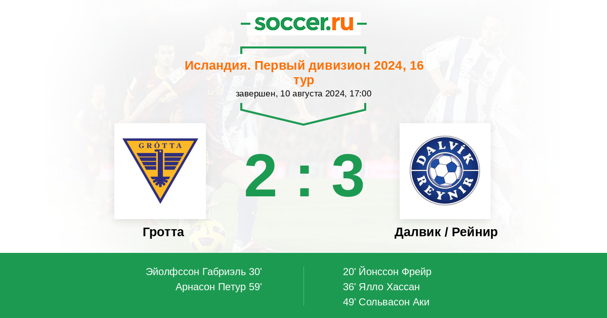 Гротта - Далвик / Рейнир: обзор матча 10 августа 2024