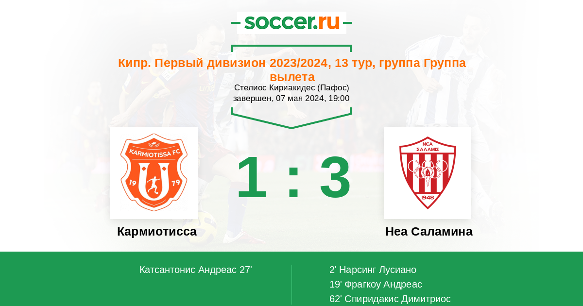 Кармиотисса - Неа Саламина: обзор матча 7 мая 2024