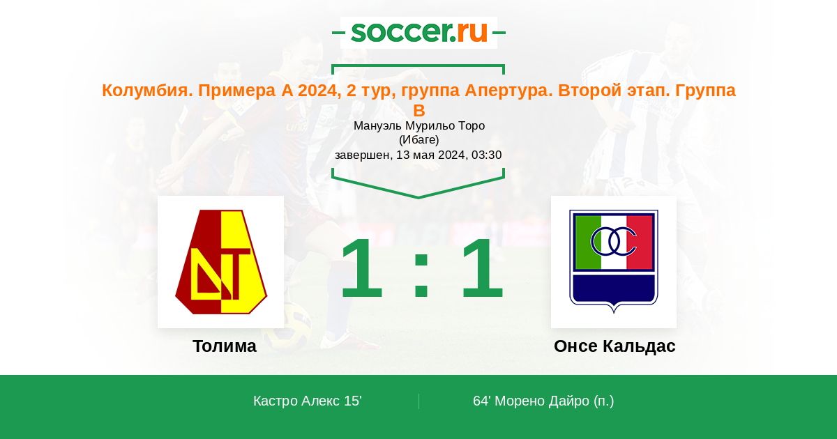 Толима - Онсе Кальдас: обзор матча 13 мая 2024