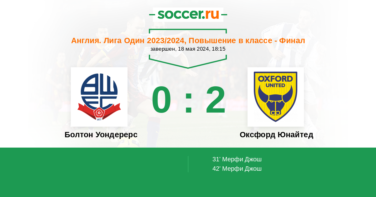 Болтон Уондерерс - Оксфорд Юнайтед: обзор матча 18 мая 2024