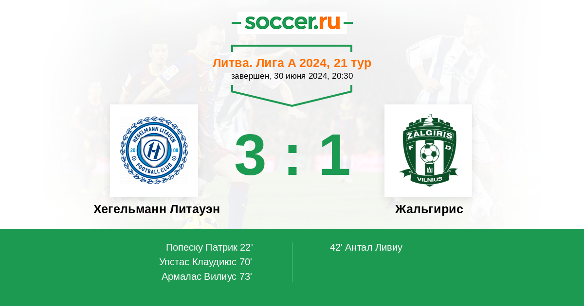Хегельманн Литауэн - Жальгирис: обзор матча 30 июня 2024