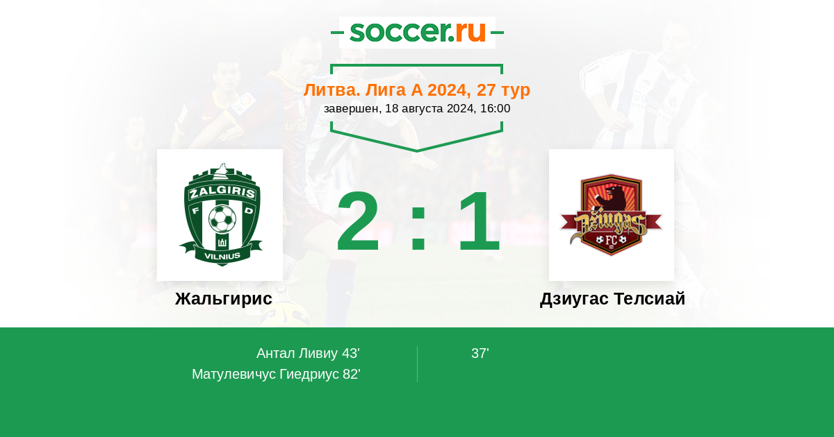 Жальгирис - Дзиугас Телсиай: обзор матча 18 августа 2024