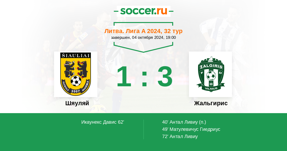 Шяуляй - Жальгирис: обзор матча 4 октября 2024