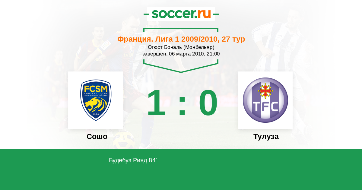 Сошо - Тулуза: обзор матча 6 марта 2010