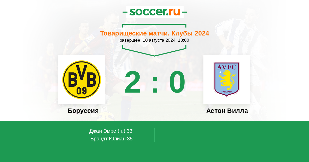 Боруссия - Астон Вилла: обзор матча 10 августа 2024