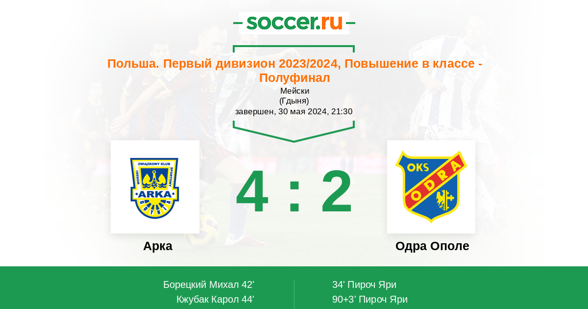 Арка - Одра Ополе: обзор матча 30 мая 2024