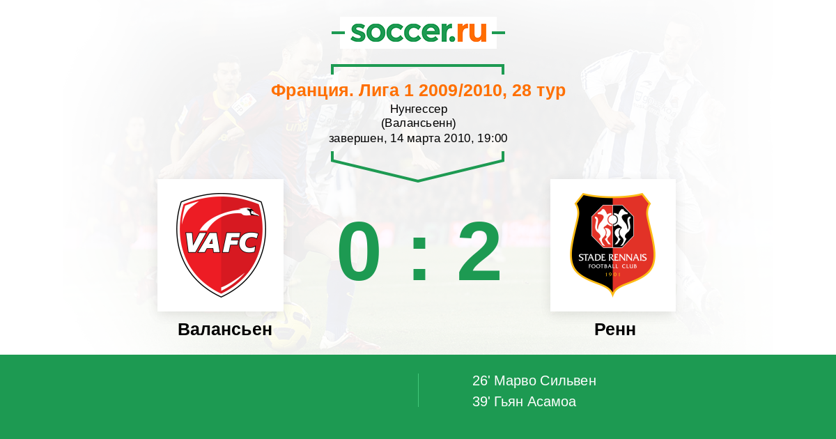 Валансьен - Ренн: обзор матча 14 марта 2010