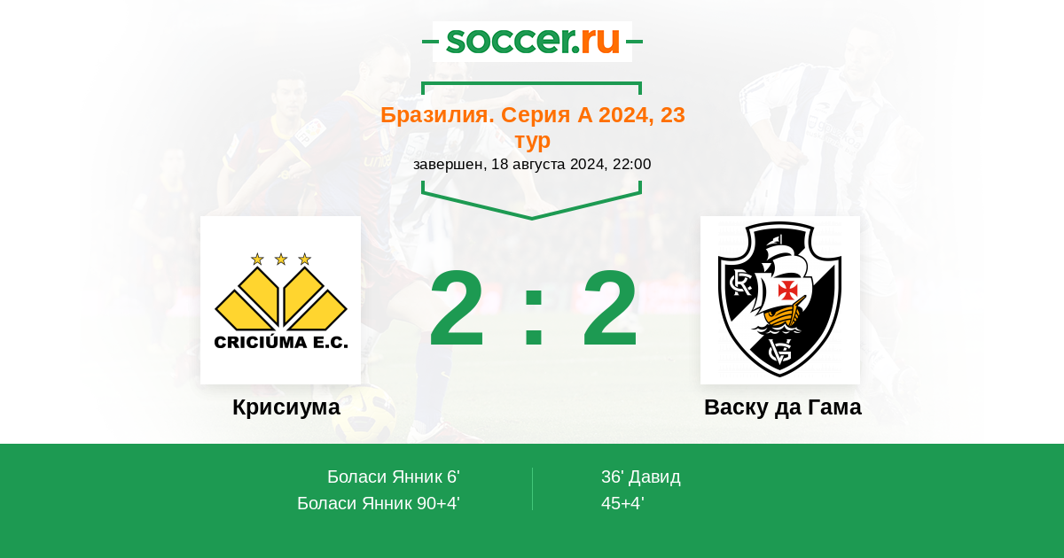 Крисиума - Васку да Гама: обзор матча 18 августа 2024