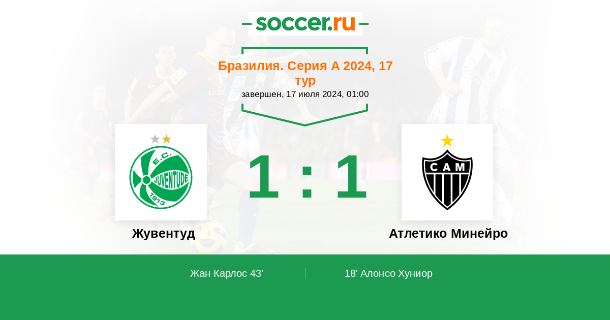 Жувентуд - Атлетико Минейро: обзор матча 17 июля 2024