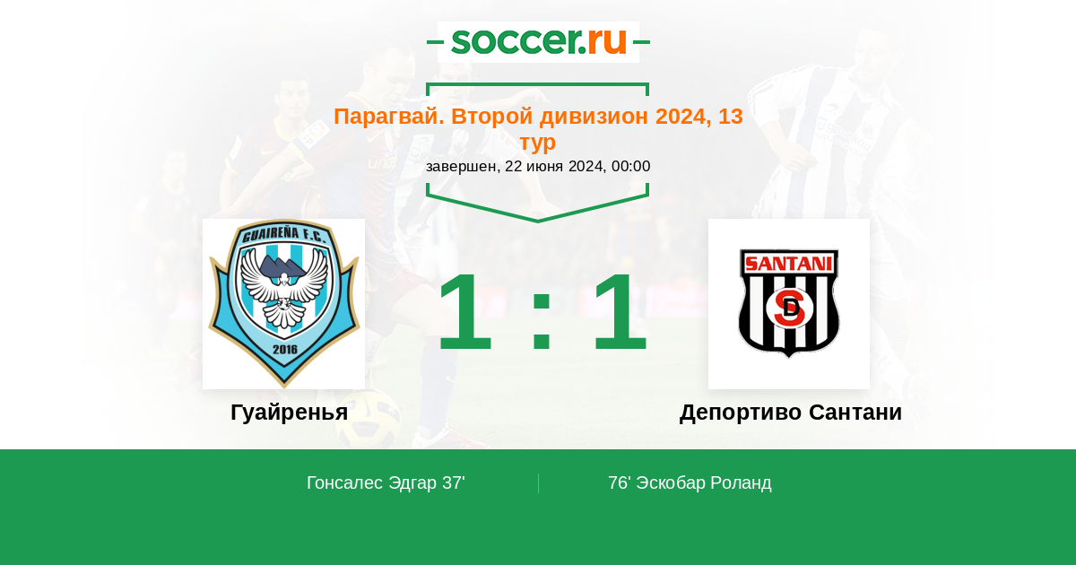 Гуайренья - Депортиво Сантани: обзор матча 22 июня 2024
