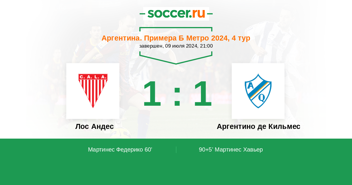 Лос Андес - Аргентино де Кильмес: обзор матча 9 июля 2024