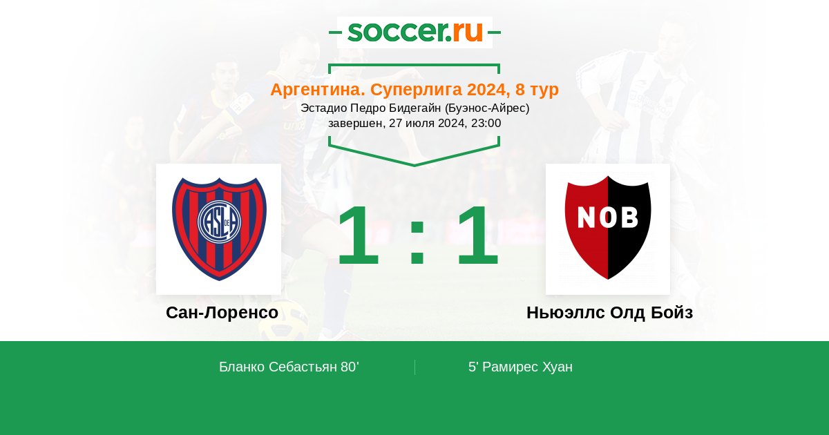 Сан-Лоренсо - Ньюэллс Олд Бойз: обзор матча 27 июля 2024