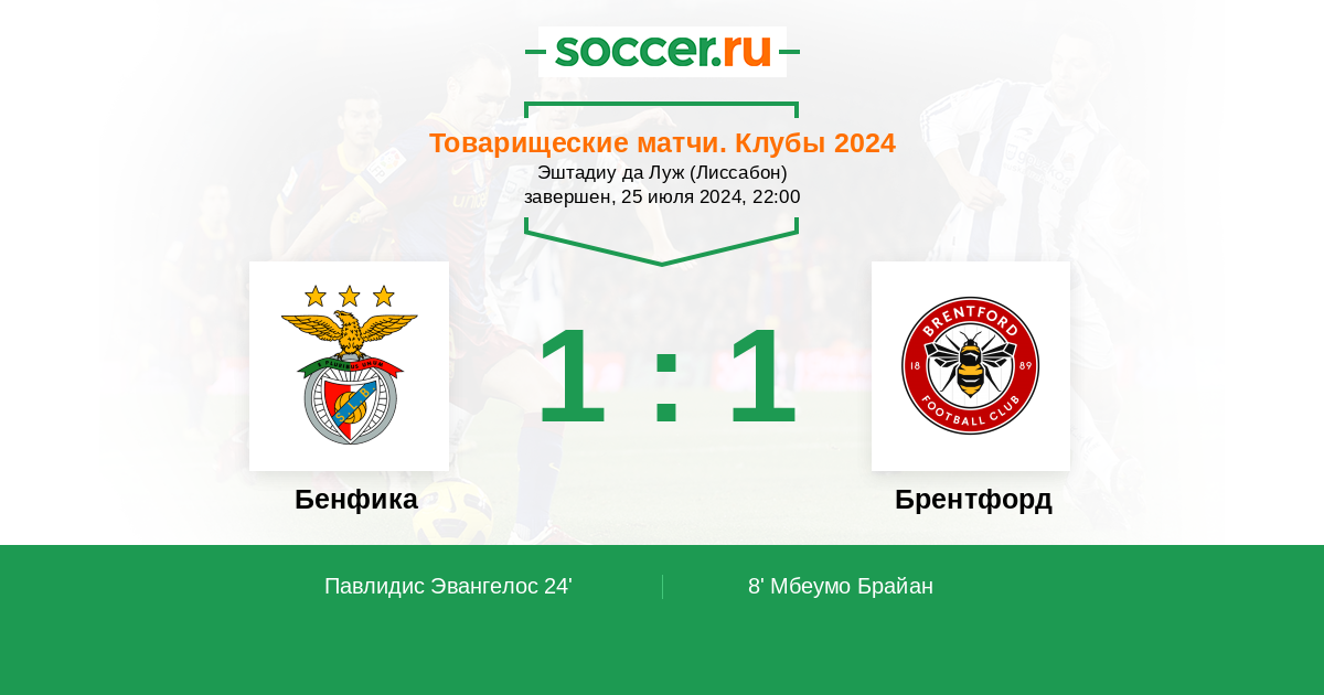 Бенфика - Брентфорд: обзор матча 25 июля 2024
