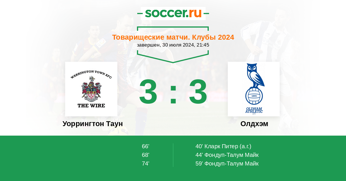 Уоррингтон Таун - Олдхэм: обзор матча 30 июля 2024