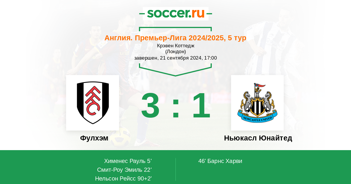 Фулхэм - Ньюкасл Юнайтед: обзор матча 21 сентября 2024