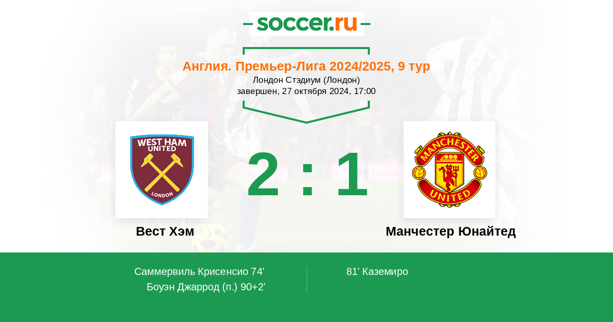 Вест Хэм - Манчестер Юнайтед: обзор матча 27 октября 2024