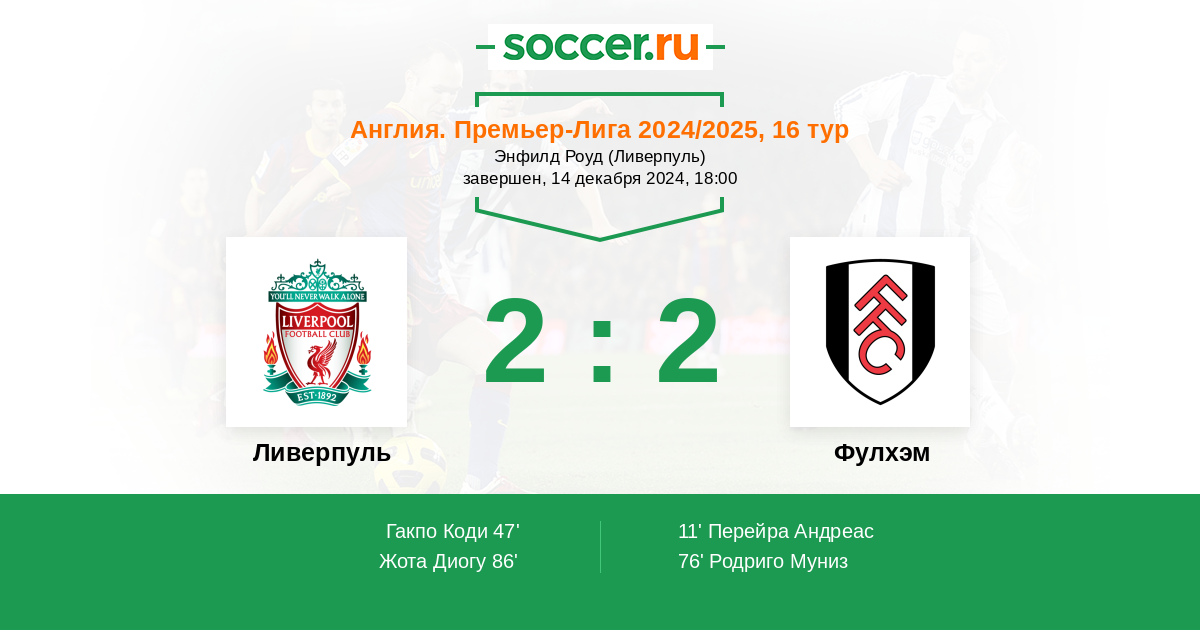 Ливерпуль - Фулхэм: обзор матча 14 декабря 2024