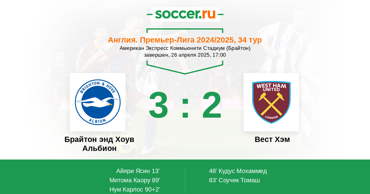 Брайтон энд Хоув Альбион - Вест Хэм: обзор матча 26 апреля 2025