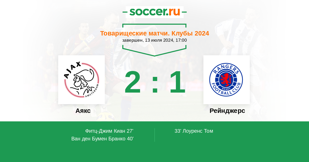 Аякс - Рейнджерс: обзор матча 13 июля 2024