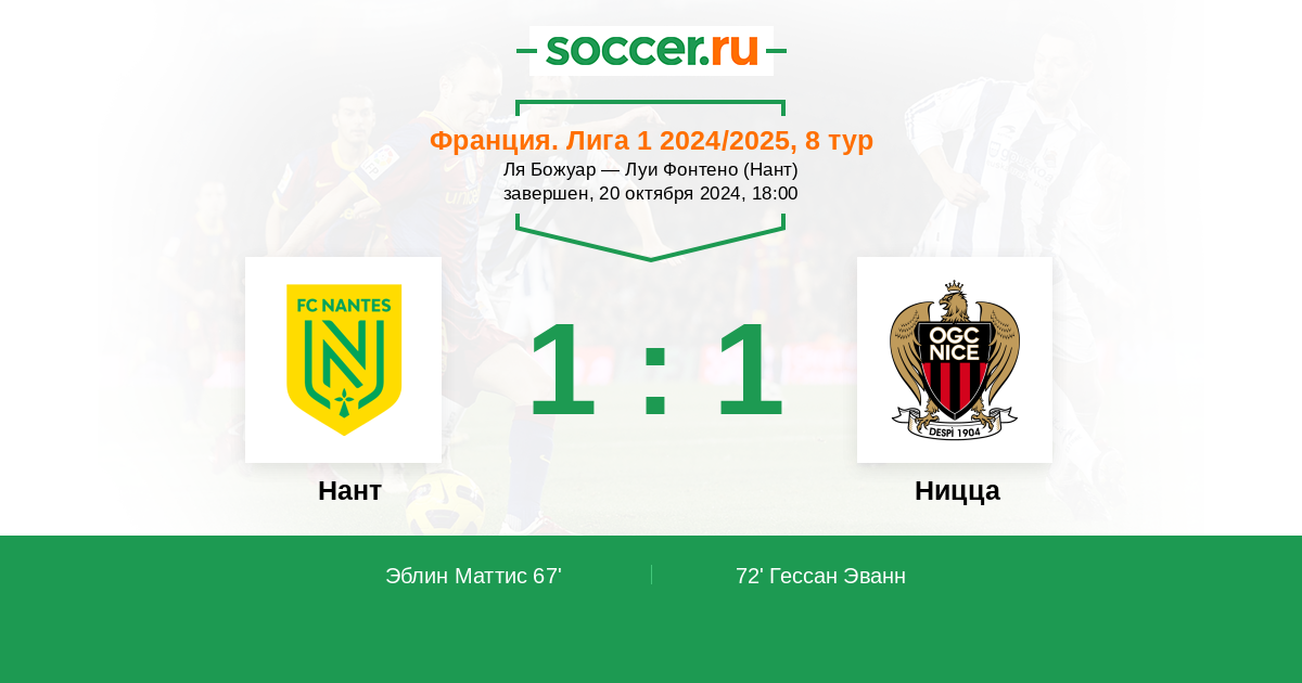 Нант - Ницца: обзор матча 20 октября 2024