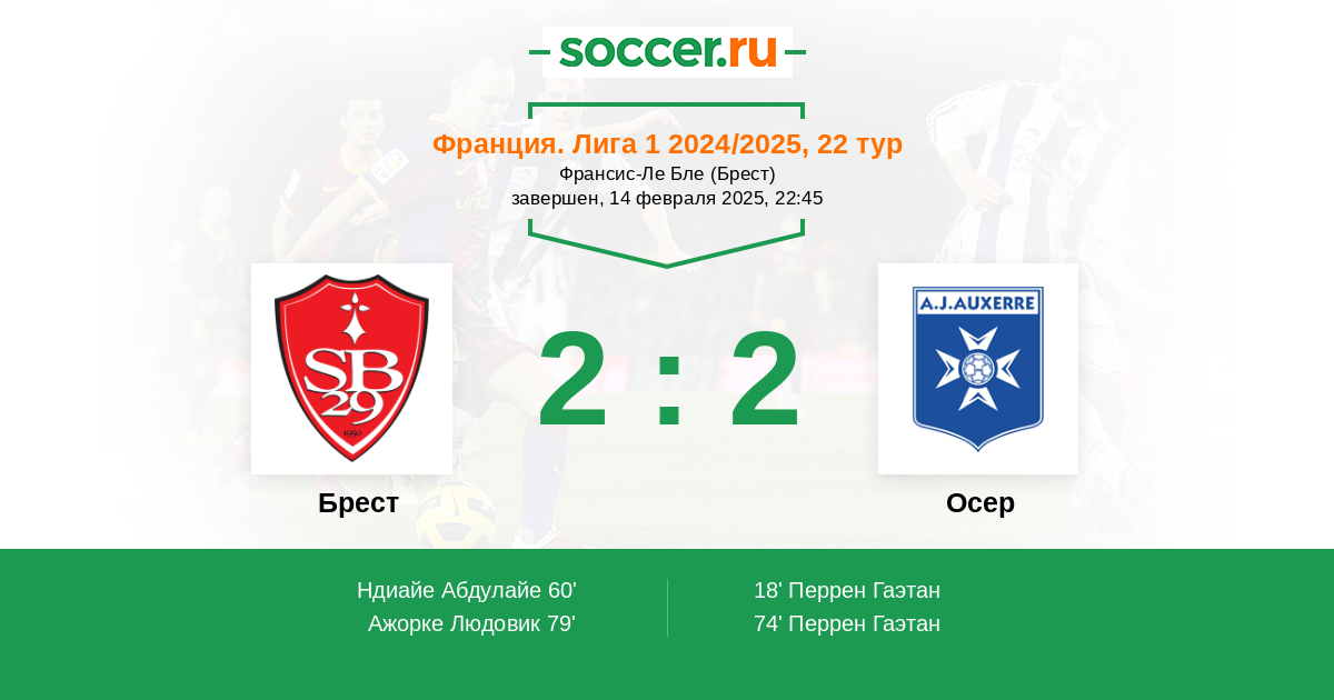 Брест - Осер: обзор матча 14 февраля 2025