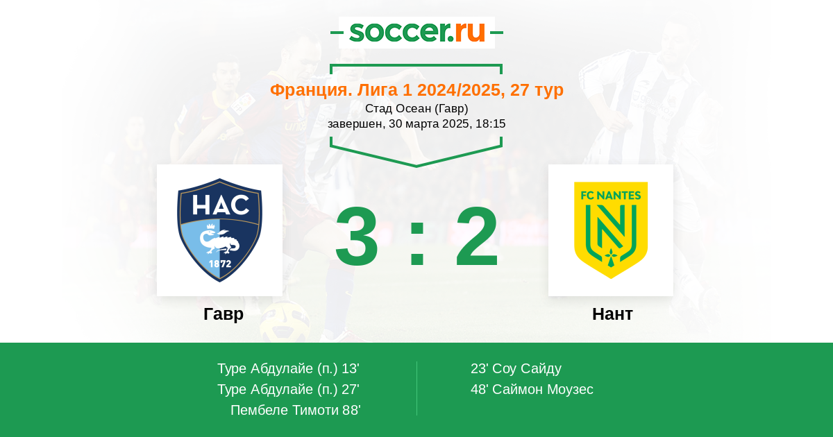 Гавр - Нант: обзор матча 30 марта 2025